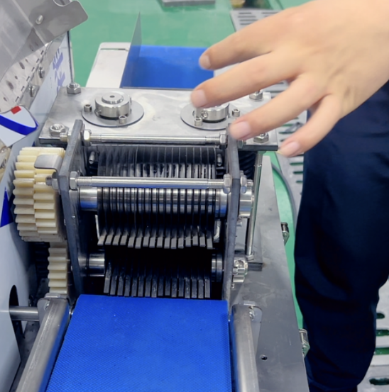 老鐵來到三好這里以后,三好進行現場試機生產,這個過程和流程都非常的簡約和高效,屏幕前的老鐵,您看到這樣的切丁效果感覺怎么樣,如果有什么好的建議,歡迎評論區留下您寶貴的建議,讓我們一起相互交流、共同提升機械自動化程度。
